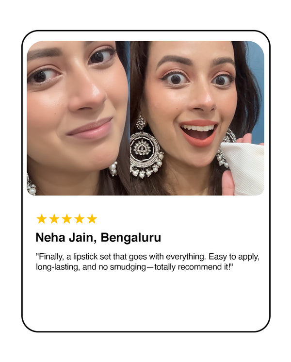 For the woman who wants it all – color, comfort, and care. Introducing Nourish Mantra Creamy Matte Lipsticks in 6 different shades, that celebrate elegance and unapologetic confidence. Each shade channels “Main Character Energy”, letting your lips do the talking while your aura takes over the room.