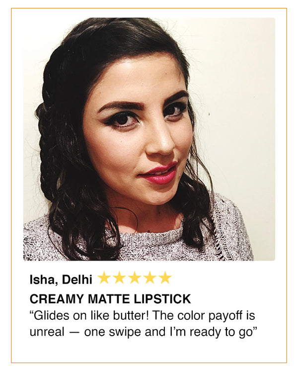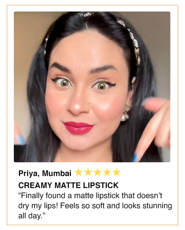 These creamy matte lipsticks glide on effortlessly, offering one-swipe pigmentation, a lightweight, non-drying feel, and a beautiful tint that lasts. Designed to complement all skin tones, the non-comedogenic formula ensures your pores stay happy and your smile stays flawless.