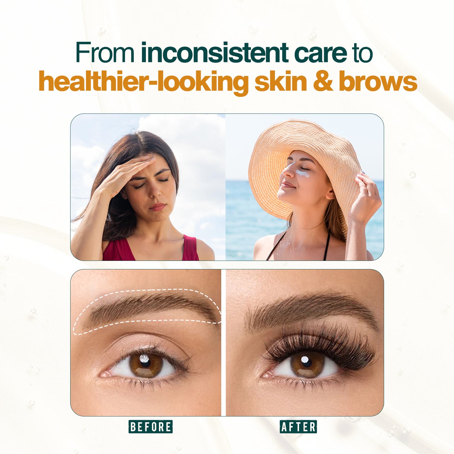 The Radiant Glow Serum helps improve skin texture and radiance, while the Brow Growth Serum supports stronger, fuller-looking brows over time. Finished with Ray Rescue Invisible Sunscreen, this routine offers lightweight sun protection without a white cast, making everyday care simple and complete.