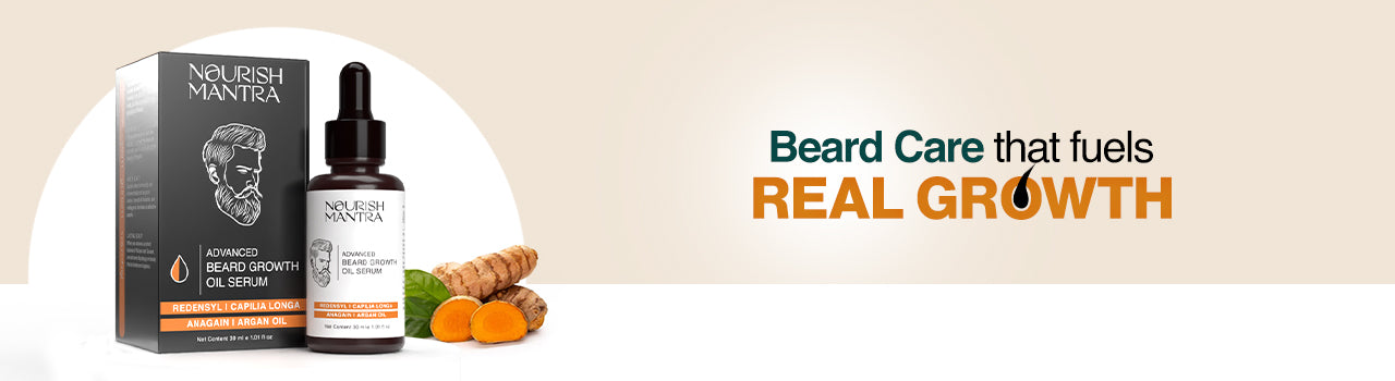 Nourish Mantra is India's leading personal care brand that is dedicated to creating natural solutions for all your skincare needs as we cater in the skincare, haircare and bath & body care category. Our range includes a wide variety of high-quality personal care products like facial oils, soaps, hair serum, and the best beard growth oil in India. At Nourish Mantra, we take pride in developing the perfect blend of natural ingredients that provides nourishment, hydration, and moisture to both your beard and the skin underneath. At Nourish Mantra, we take pride in developing the perfect blend of natural ingredients that provides nourishment, hydration, and moisture to both your beard and the skin underneath. Our Beard Growth Oil is crafted with an unbeatable combination of natural ingredients like Capilia Longa, Argan Oil, and Vitamin E. These ingredients work together to promote fuller, thicker, and even beard growth, while targeting common beard problems like dryness, dandruff, and itchiness.