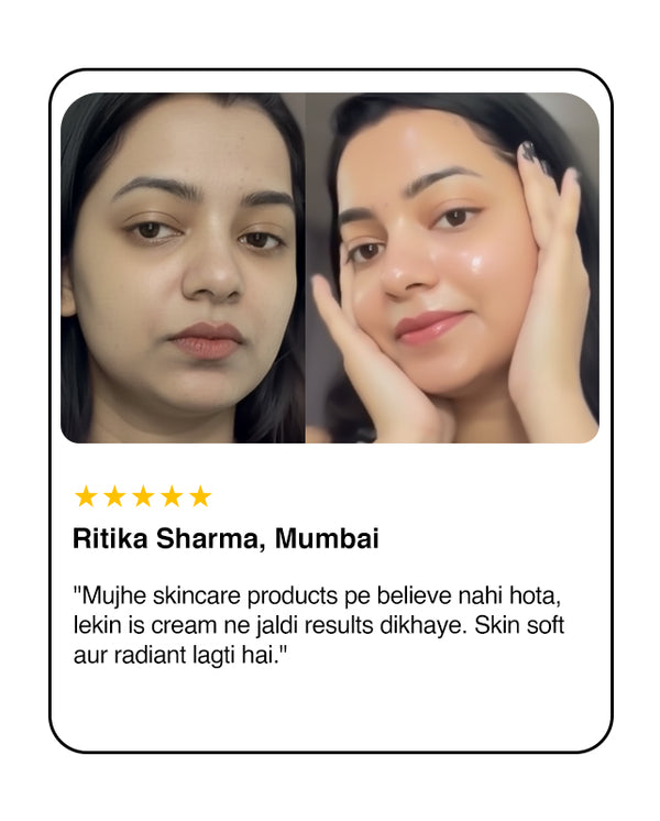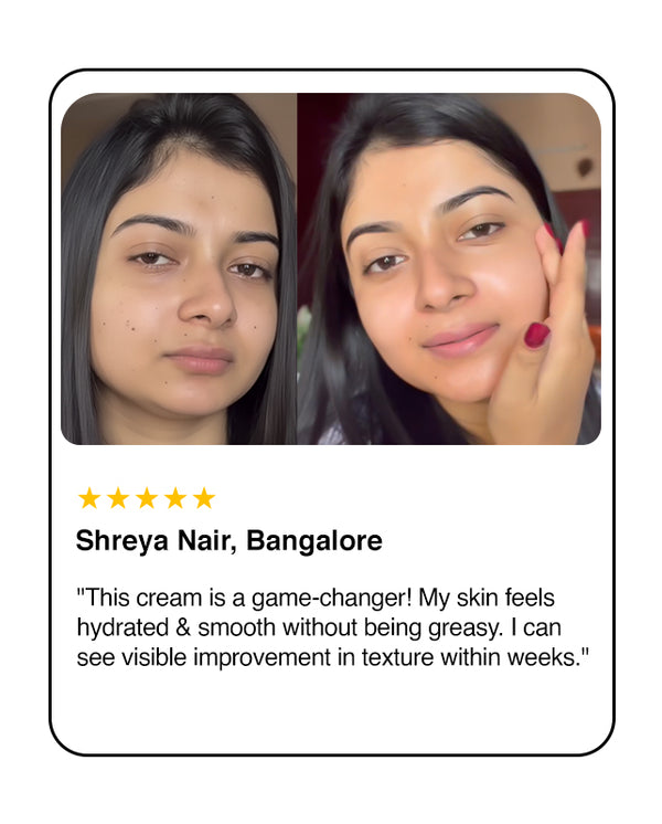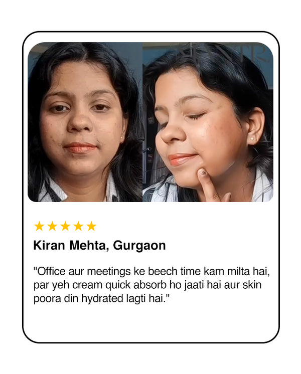 Urban Rani Daily Moisturizing Cream is your everyday fix for plump, hydrated, and healthy-looking skin. Curated with our Sciyurveda™ technology, a fusion of modern science and ancient Ayurvedic wisdom, this cream blends the best of both worlds to give your skin lasting nourishment and protection.