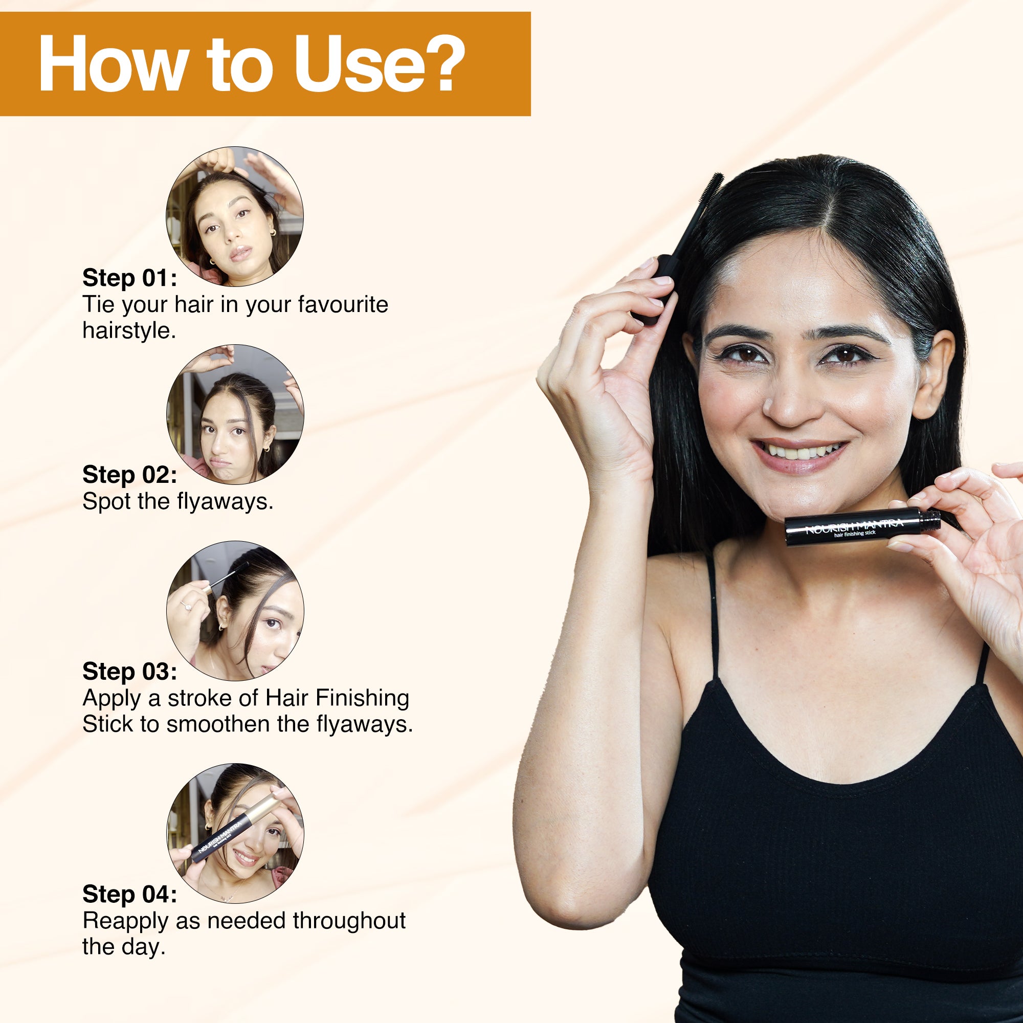 Tame those baby hairs and flyaways in seconds with Nourish Mantra’s Hair Finishing Stick, your personal stylist in a tube! Powered by Sciyurveda™, a unique blend of modern science and ancient Ayurvedic wisdom, this stick is designed for quick touch-ups that smooth stubborn strands without leaving a greasy or stiff feel. The formula is enriched with hair-loving ingredients like Jojoba Oil, Argan Oil, Vitamin E, and Murumuru Butter, delivering deep hydration while reducing frizz and flyaways. Whether you're heading to a meeting or a party, this lightweight, travel-friendly stick gives your hairstyle a neat, polished look that lasts all day. No mess, no stress — just perfect hair, anytime, anywhere.