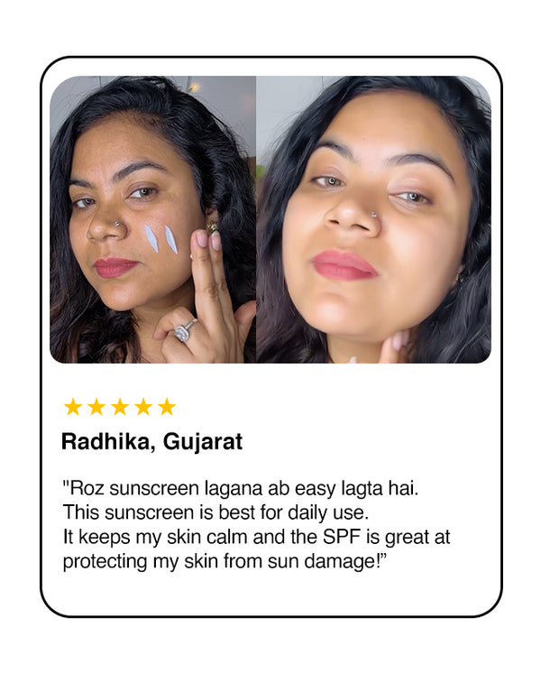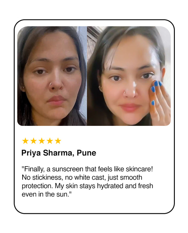 Your ultimate sun defense meets premium skincare. With SPF 50 and a powerhouse blend of Hyaluronic Acid, Aquaxyl, Aloe Vera, and Ashwagandha, this sunscreen protects, hydrates, and revitalizes your skin — all in one lightweight, invisible formula. No white cast, no stickiness — just pure protection with a silky, smooth finish.